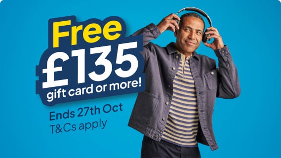 As a special thank you for taking out a plan, we'll send you a free welcome gift card, worth £135! It'll be yours to spend in all your favourite shops like M&S, Argos and Boots. T&Cs apply