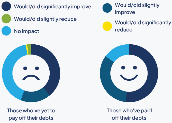 But in reality, most people who’ve paid off their debts do feel happier as a result (85% – 2% up since 2024), including 52% (+1%) who say they feel significantly happier. And no one said paying off their debts reduced their happiness.