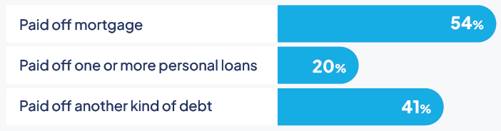 54% of people have paid off their mortgage in the past five years. This rises to an average of 61% for retirees, and 60% for the happiest people.