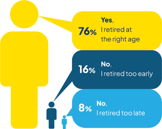 Like in 2024, 3 in 4 retirees feel they retired at the right age – rising to 83% for the happiest people (-1% since 2024). But 16% feel they retired too early – 2% down since 2024. And over 1 in 4 (26%) of retirees only have a State Pension.