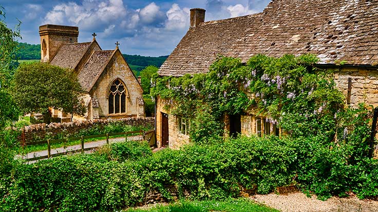 The Cotswolds is a favourite for countryside romance. The rolling hills are dotted with stone cottages, historic towns full of cafes and antique shops, and excellent local food.